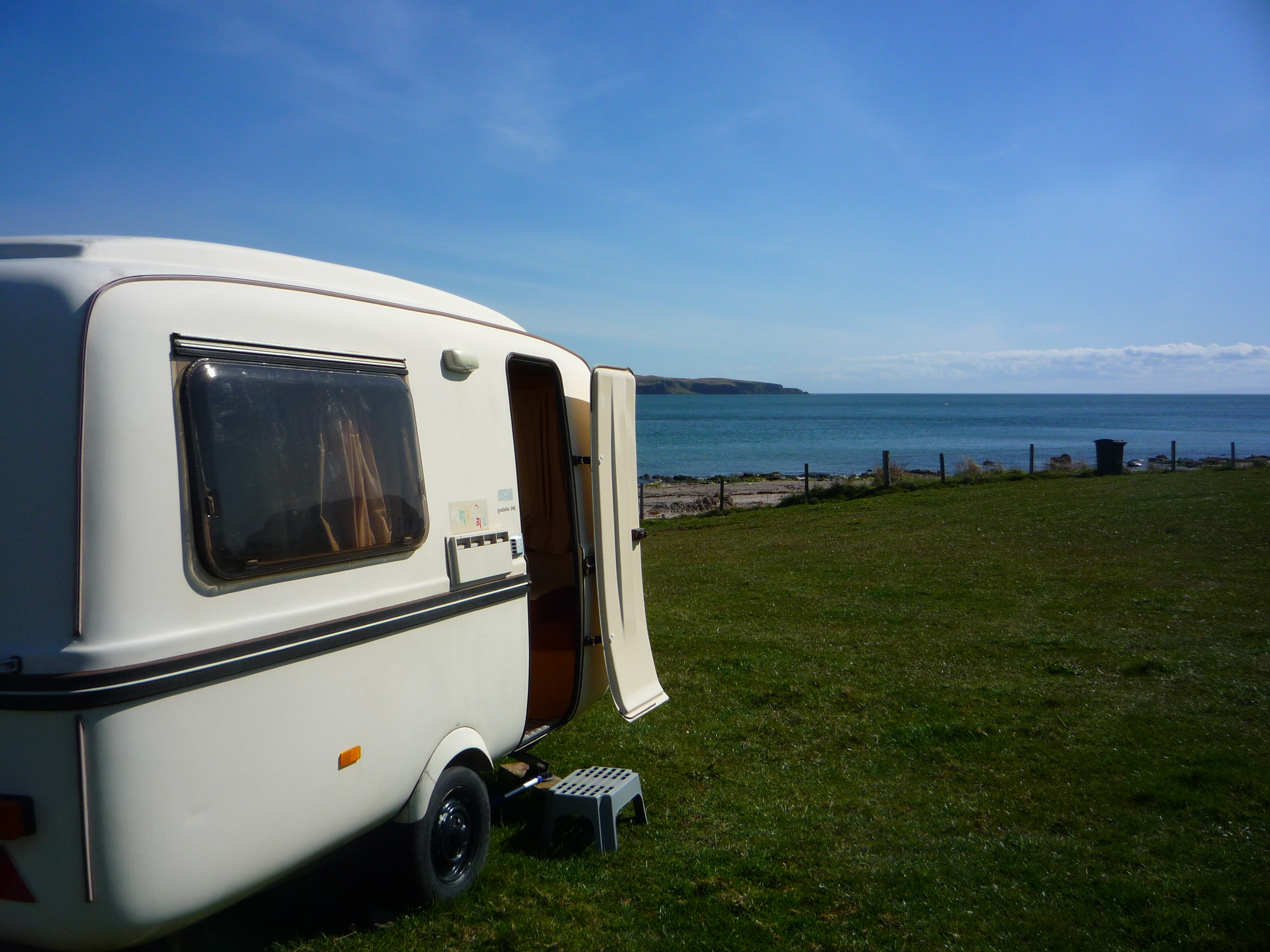 The summertime area for touring caravans, including mine, does not as yet have a name. I suggest The Squat to the site owner – he agrees to put it out for consultation. It is in the field which runs down to the seashore. My pitch is nearest to the beach with stunning sea views. A rough wooden fence was built to separate my ‘van from the next man’s. Another rumour had it that my neighbour Chic was not very happy about my prime location. He had insisted that the fence wasn’t long enough to keep my caravan out of his line of sight (had he heard the rumour about my private prancing?). Another clype couldn’t stop himself from telling me that after he saw Chic drinking coffee with me, after he had cut my grass and helped me with my generator. Said Clype had introduced himself and said rather too knowingly “Ah… so you’re Glesca Anni…?”. To set the record straight: when I introduced myself, Chic had fallen over himself with offers of help and coffee saying how very glad he was that I had come over. He also stressed that his partner wasn’t well and he was hoping she would come with him on his next visit. He got to talking, told me practically his whole life story over one coffee and he only occasionally searched for commonalities in that new-neighbour way that people do. I mostly smiled and nodded. We are sound now though, his four year old grandson sweetly calls me ‘lady’.