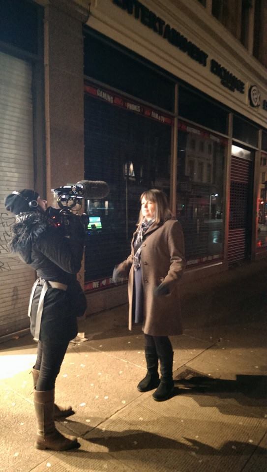 My friends pointed and said ‘Interview Anni!’. They were filming a number of vox pop interviews to get a feel for Glasgow city centre at night. I agreed to be interviewed, the young man took my name and telephone number and the young woman started the interview.