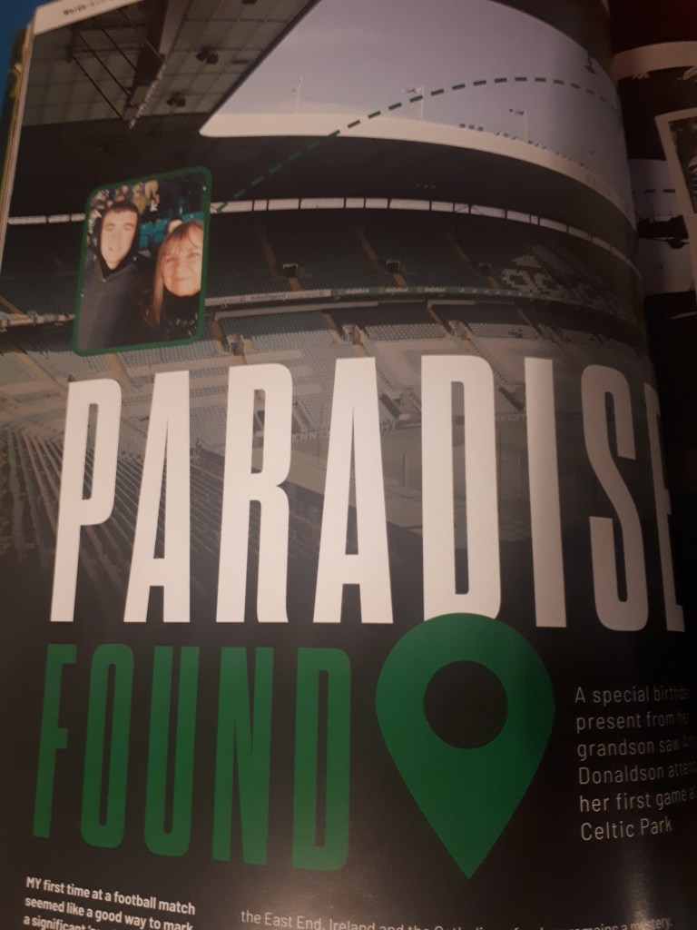 Back on the terraces, I really enjoyed the game, instinctively jumping to my feet with everyone around me when Celtic scored. For all the support and loyalty, the scathing comments, swearing and growling when their team blew it with an own goal, or underperformed in any way, was hilarious. I learned which manoeuvers earned applause or loud howls of derision; miraculously I now understand the ‘off side rule’. At half time there was much coming and going for pies and drinks. Looking around I saw, men and women, young and old, families, couples of all ages and Dads with wee tots on their shoulders, cheery waves and chat between season ticket neighbours.