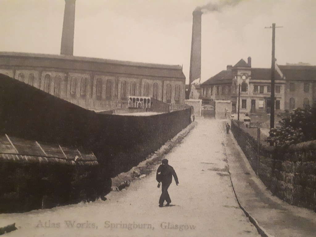 In 1841 the Edinburgh and Glasgow Railway Company drove a line through Springburn and later established The Cowlairs Locomotive Works in 1842, probably among the first railway workshops in Britain. The first employees settled in Springvale village to the south of Springburn which was home to the workers employed by Joseph Findlay’s cotton spinning mill. This was followed by the establishment of the Caledonian or St. Rollox Works in 1856; Neilson’s Hydepark Locomotive Building works moved to Springburn from Hydepark St., Anderson in 1861. In 1903 Hydepark, and Atlas Works amalgamated with the Queen’s Park works of Polmadie in Springburn to become the North British Locomotive Company. Springburn thus became what has been described as the ‘Scottish Railway Metropolis’.